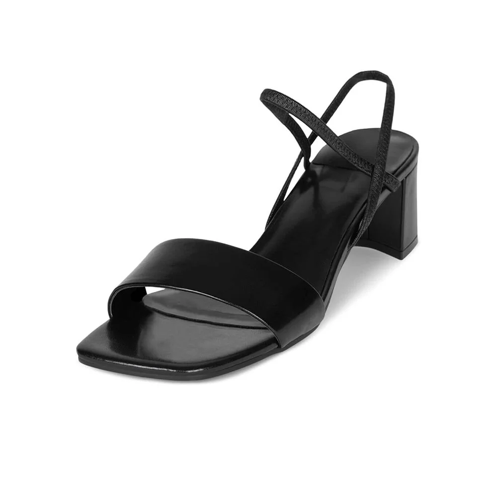 YDN Black Open Square Toe Slingback Simple Block Heel Sandals