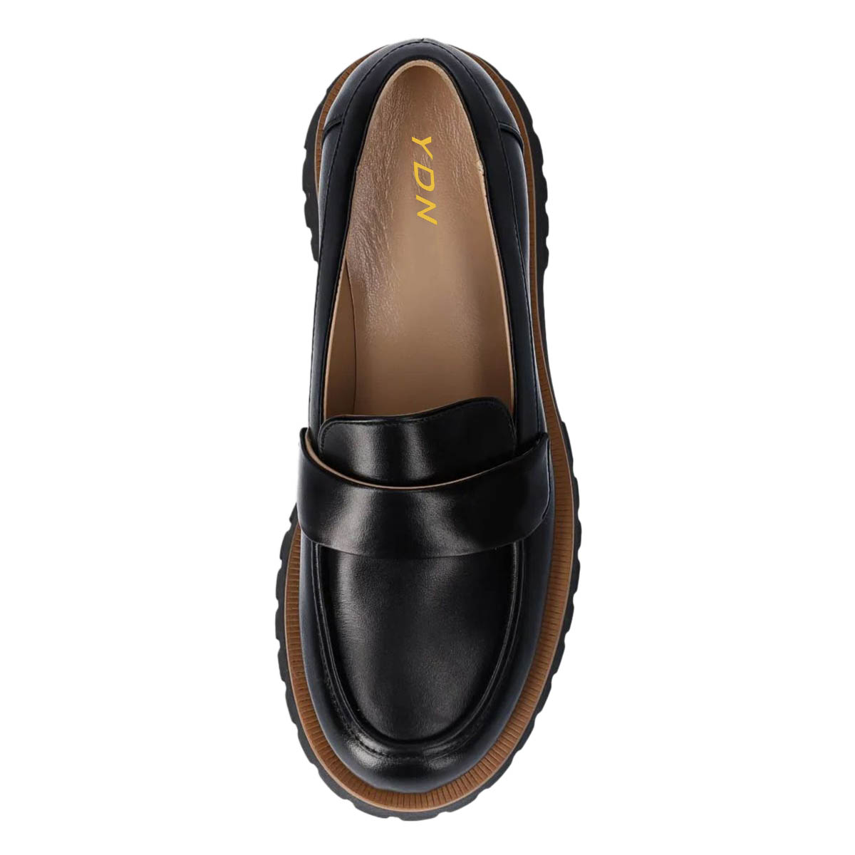 YDN Black Vegan Leather Round Toe Pull-On Chunky Loafers Women