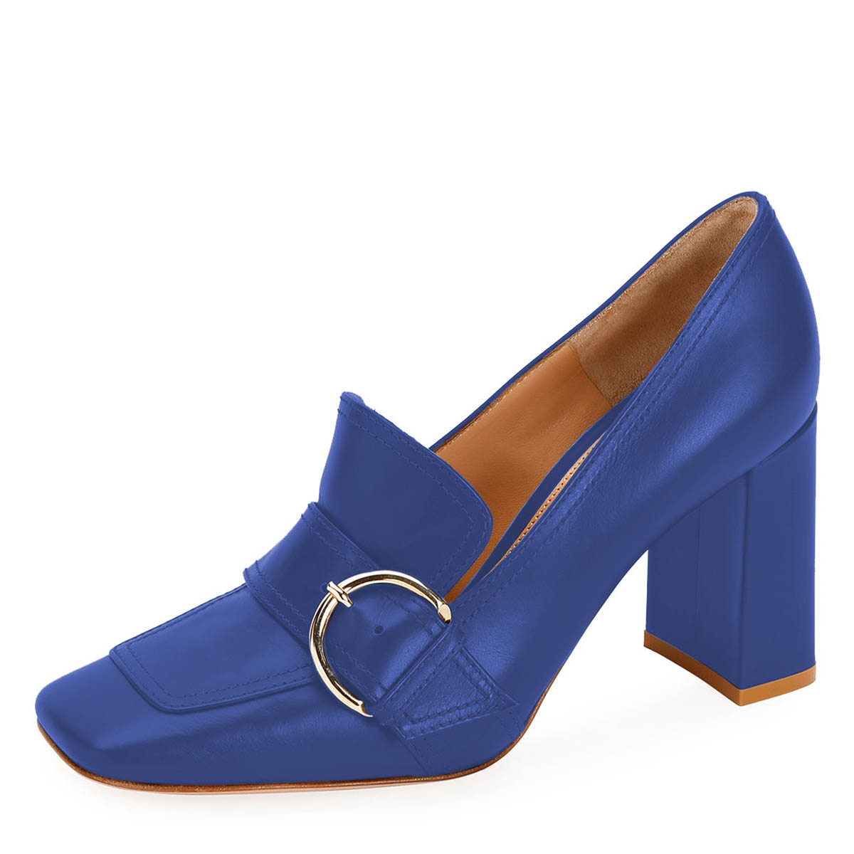 YDN Blue Buckle Strap Square Toe Chunky Heeled Loafers Women