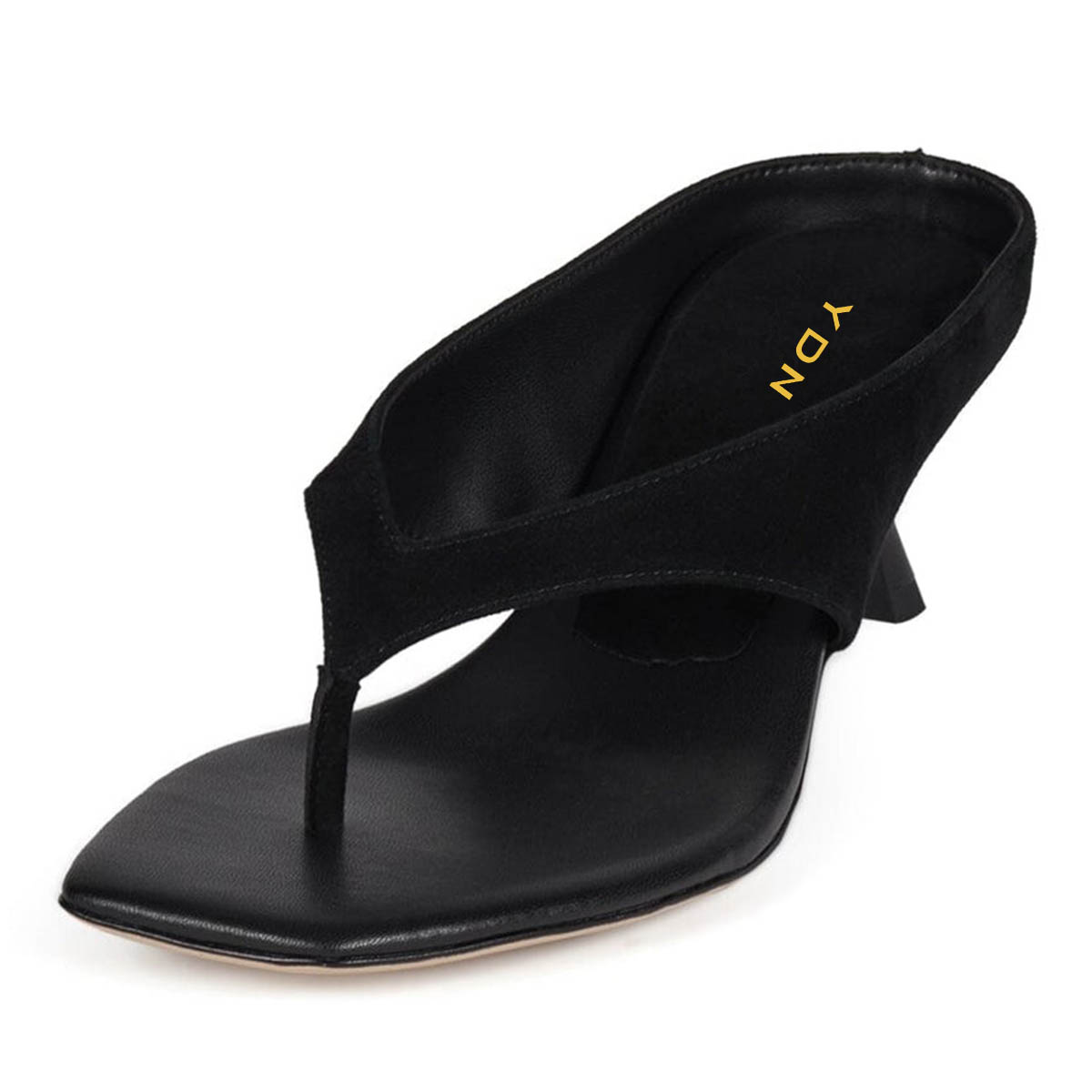 YDN Casual Open Toe Patchwork Spool Heel Mules Shoes in Black