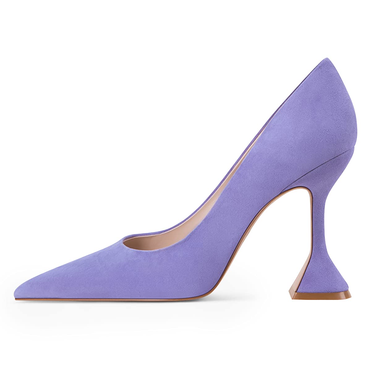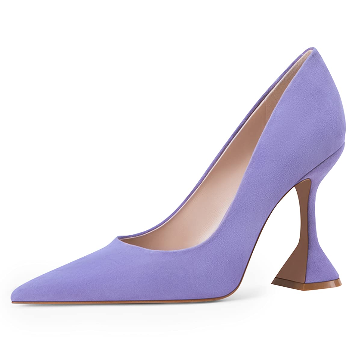 YDN Classic Purple Vegan Suede Flared Heel Pointed Toe Pumps Shoes