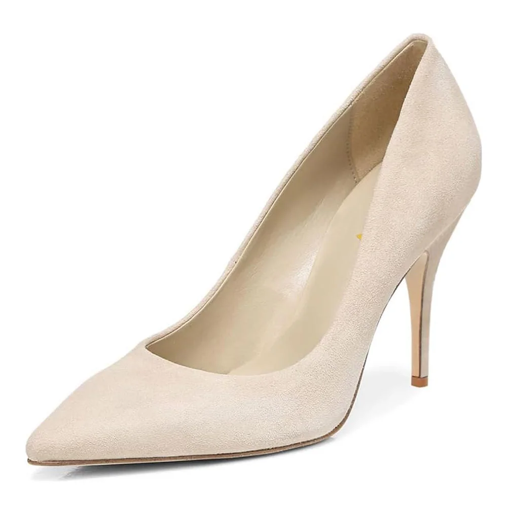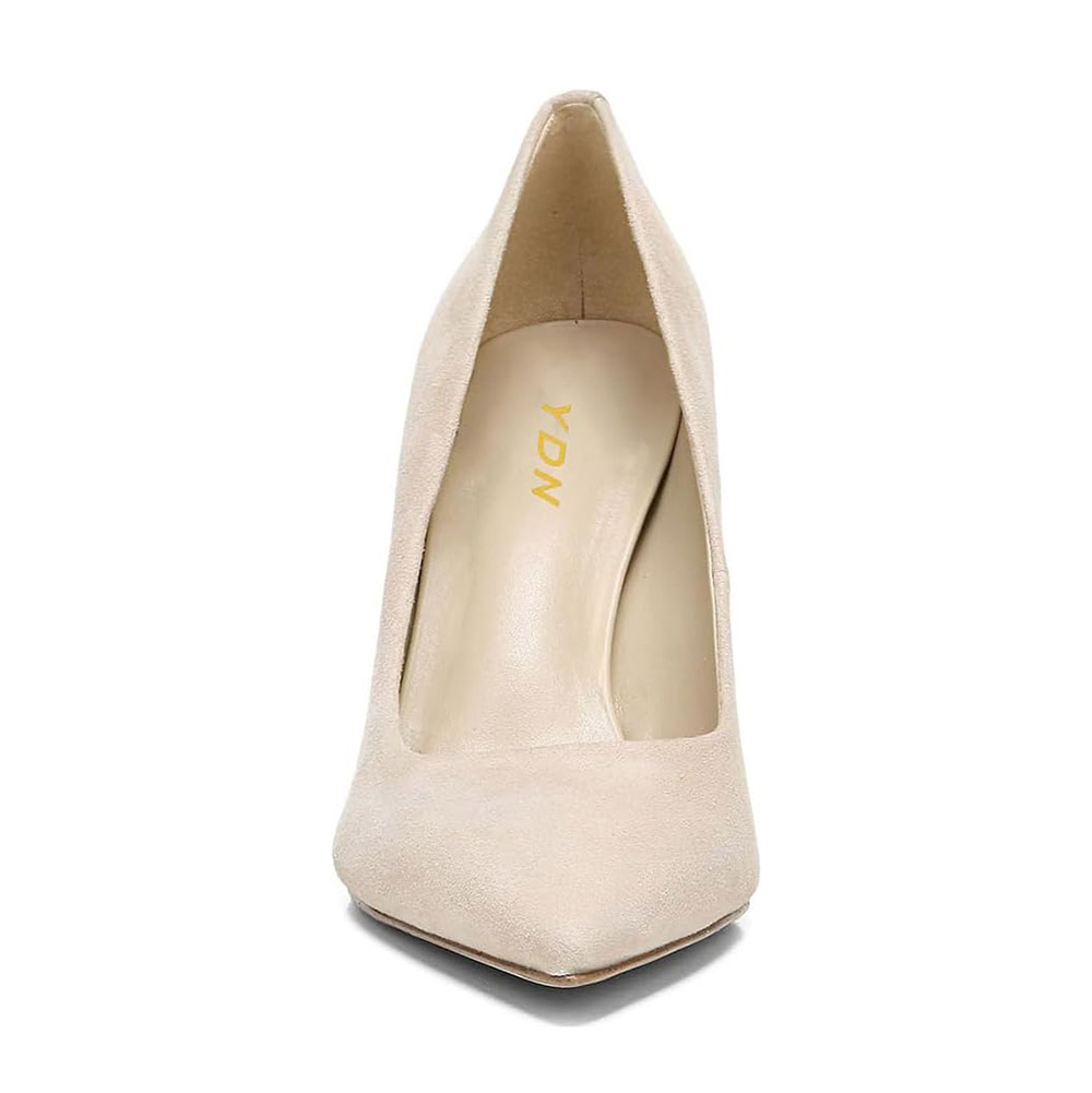 YDN Classic Vegan Suede Formal Pointed Toe High Heels in Light Beige