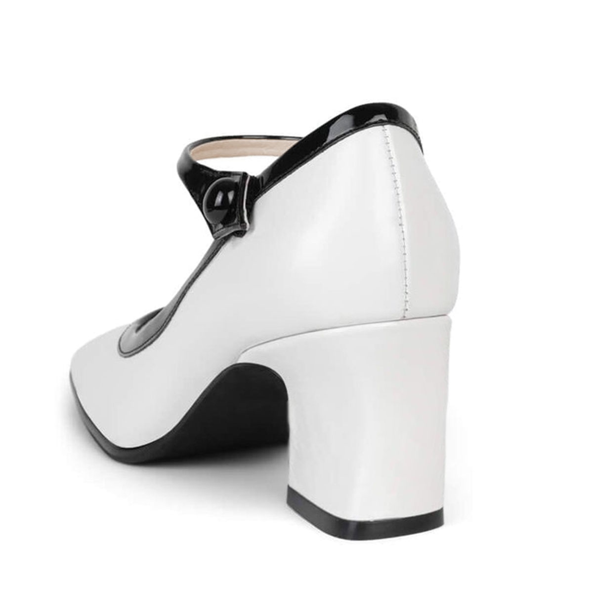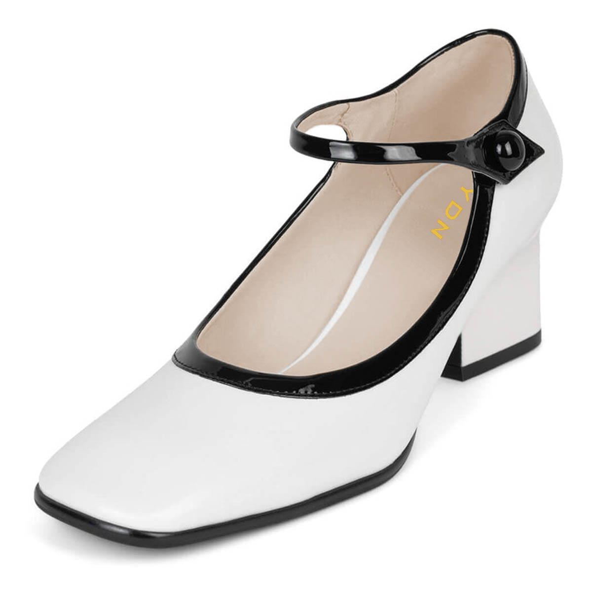 YDN White Elegant Square Toe Chunky Heel Mary Jane Pumps