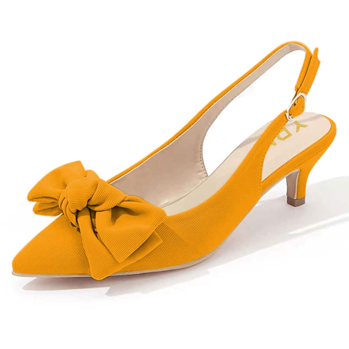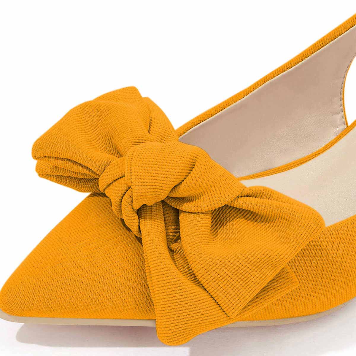YDN Elegant Yellow Pointed Toe Kitten Heel Bow Slingback Pumps