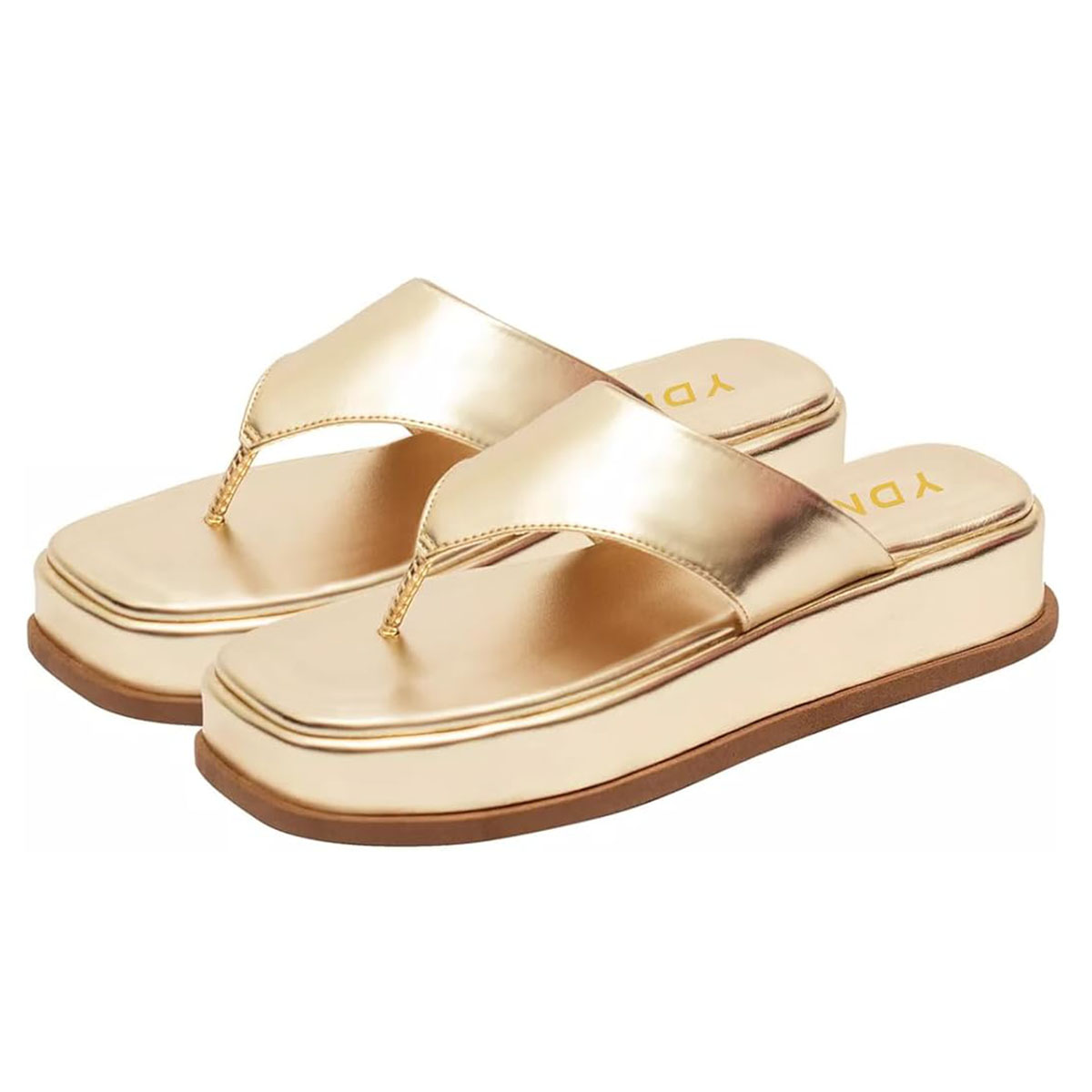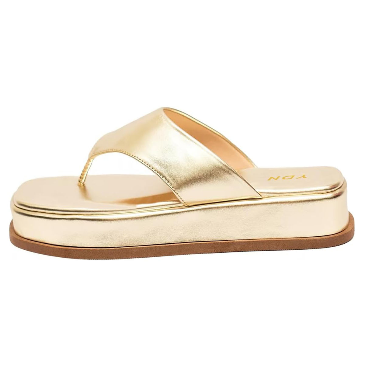 YDN Gold Vegan Leather Flip Flops Open Toe Platform Sandals