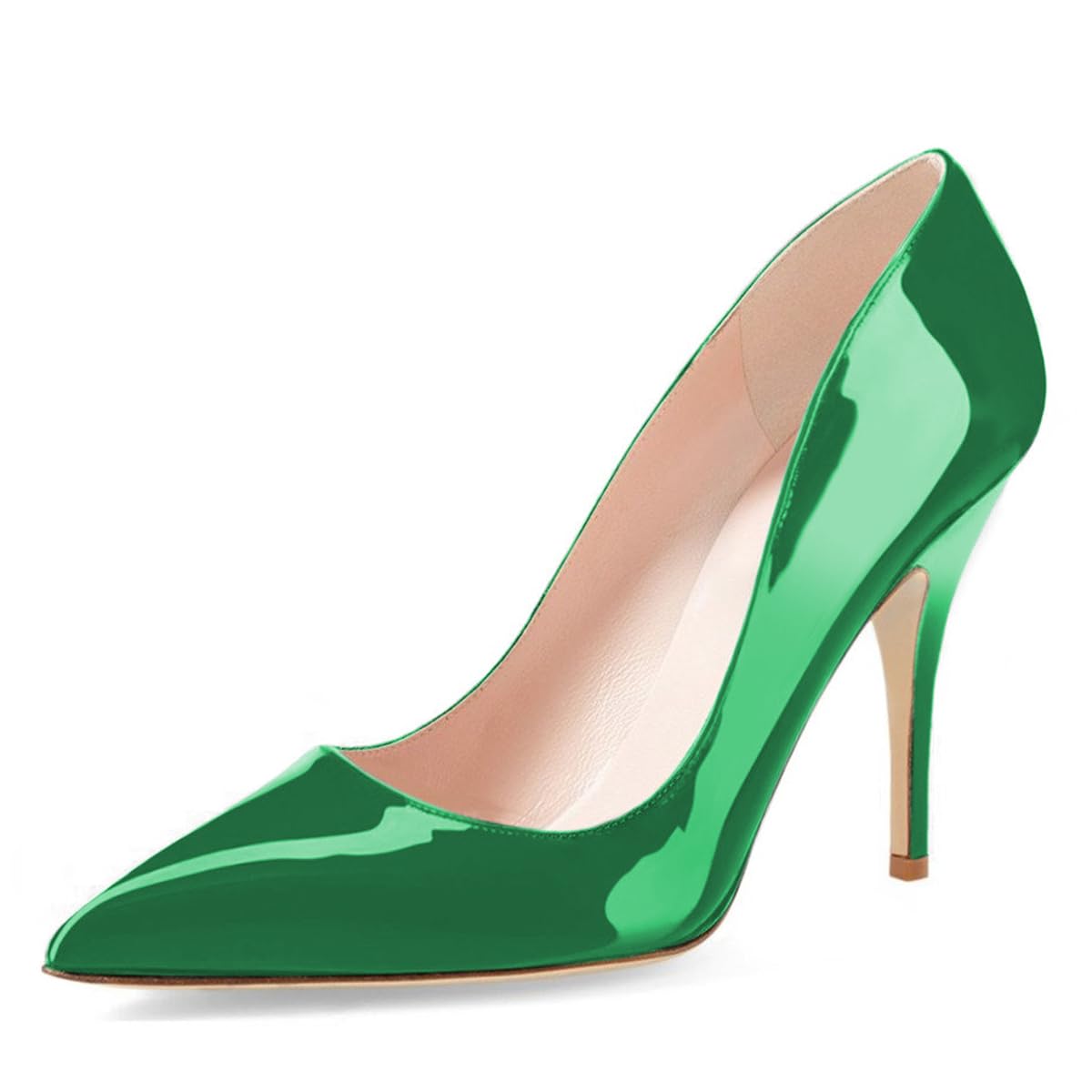 YDN Green Patent Leather Stiletto Heels Shoes with Pointed Toe