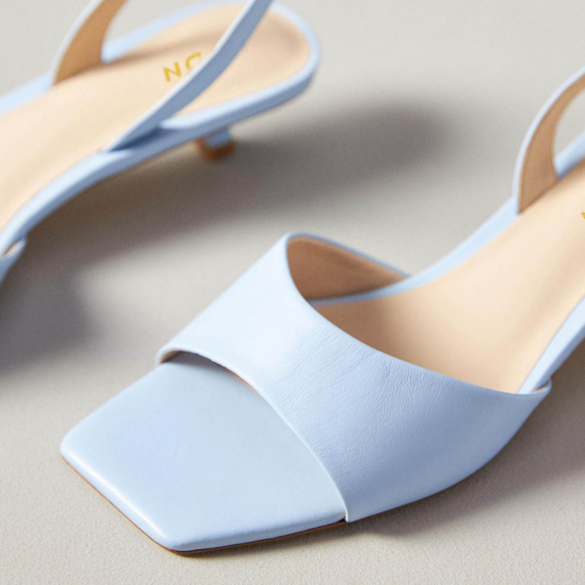 YDN Light Blue Open Toe Slingback Kitten Heel Dress Sandals