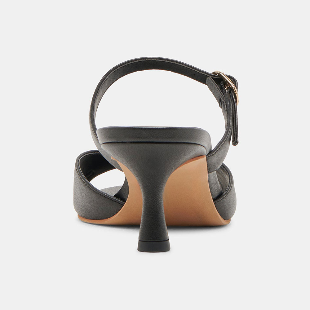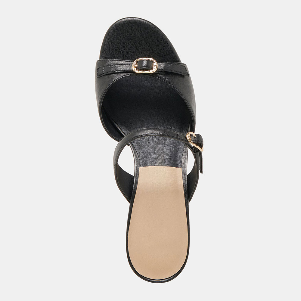 YDN Simple Black Open-Toe Kitten Heeled Mules with Double Buckle