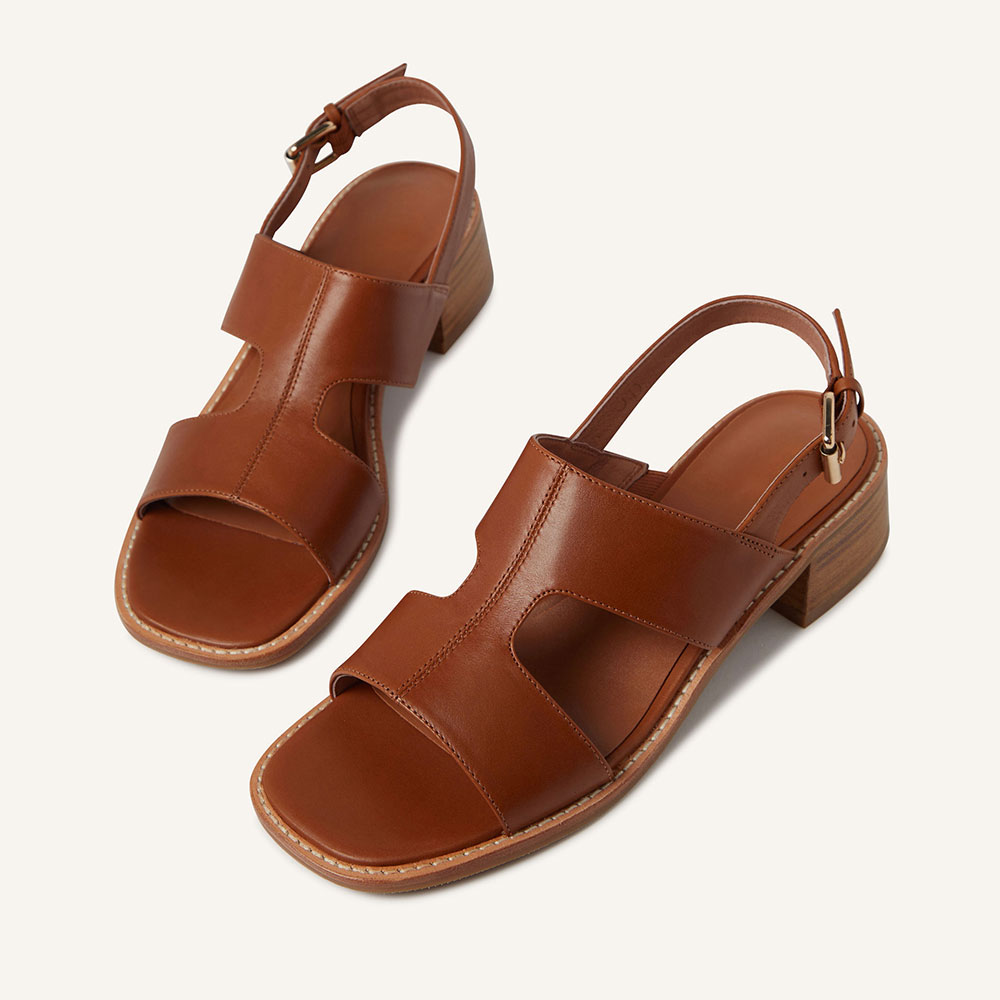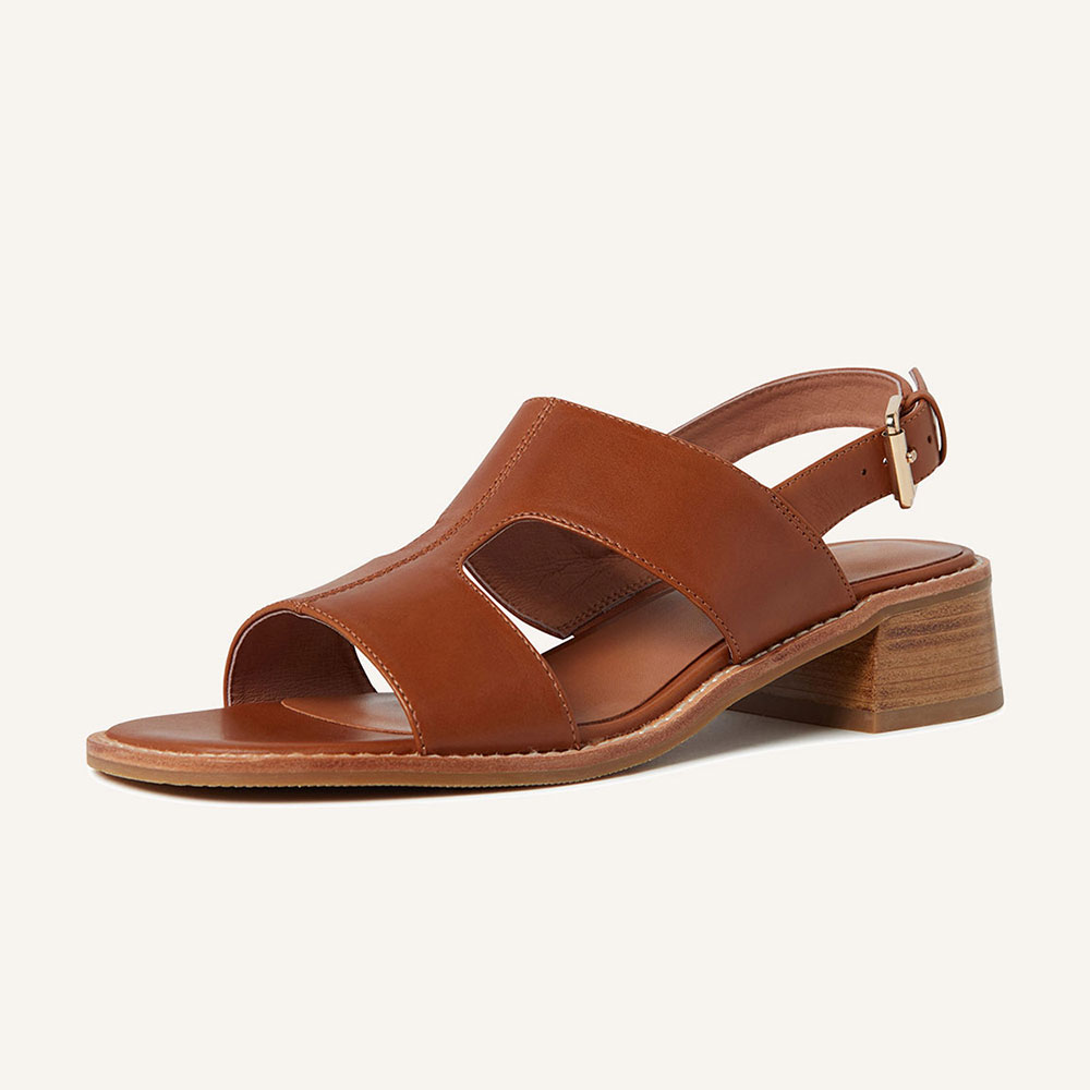 YDN Simple Brown Open Toe Slingback Stacked Heeled Sandals