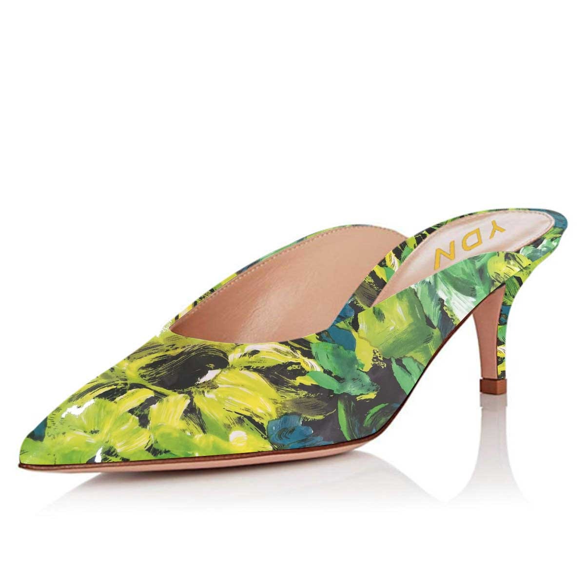 YDN Simple Green Painting Pointed Toe Slip-On Mules for Women
