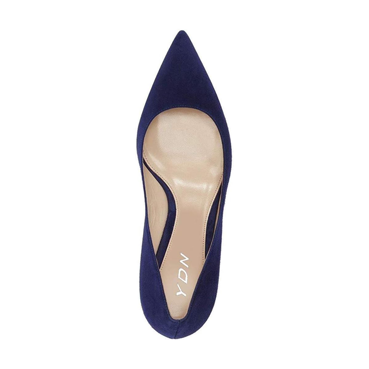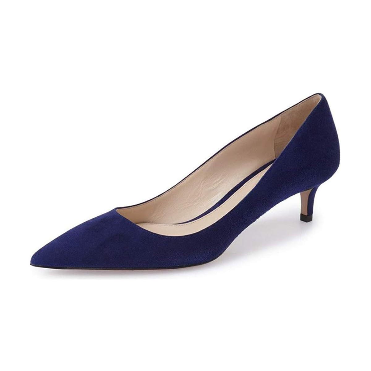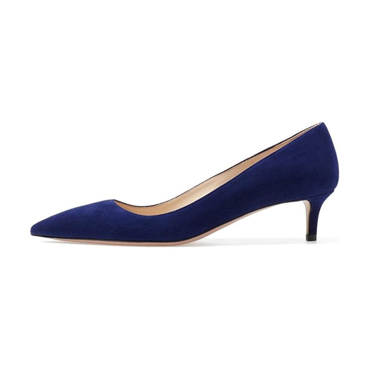 YDN Simple Navy Vegan Suede Pointed Toe Kitten Heel Pumps Shoes