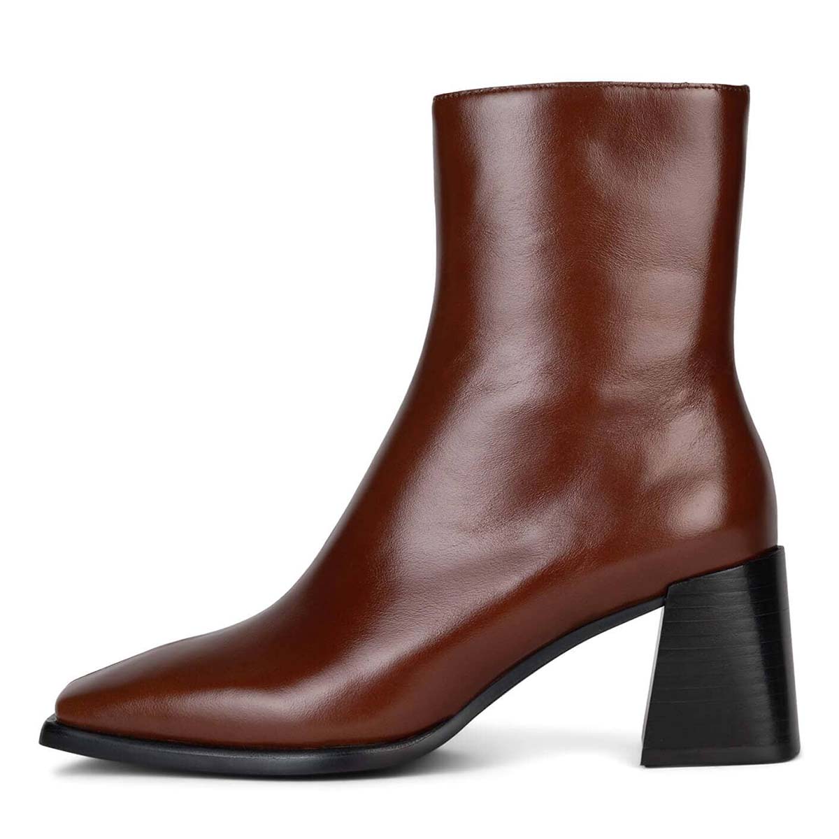 Classic Square Toe Chunky Heel Zipper Brown Short Boots for Women