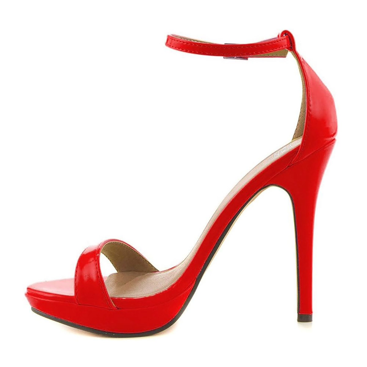 YDN Stiletto Heel Buckle Closure Open Toe Summer Sandals in Red