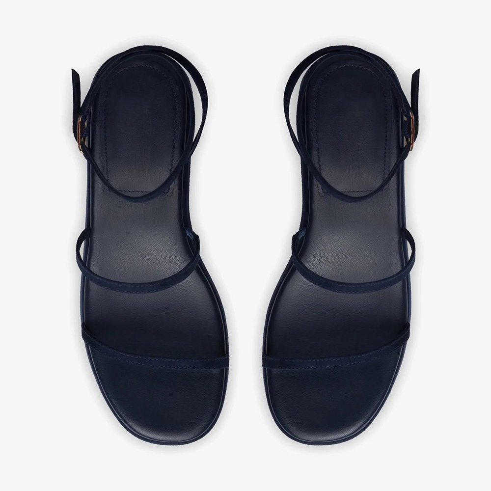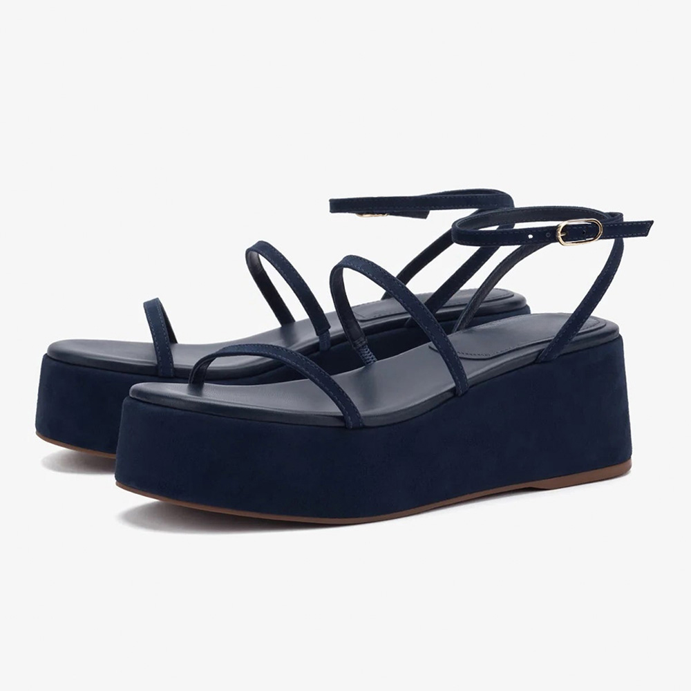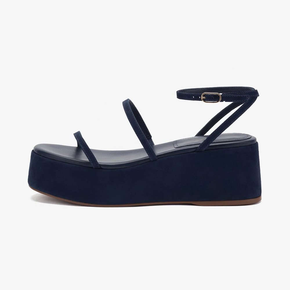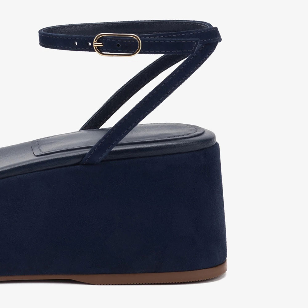 YDN Vegan Suede Open Round Toe Wedge Sandals for Women in Navy