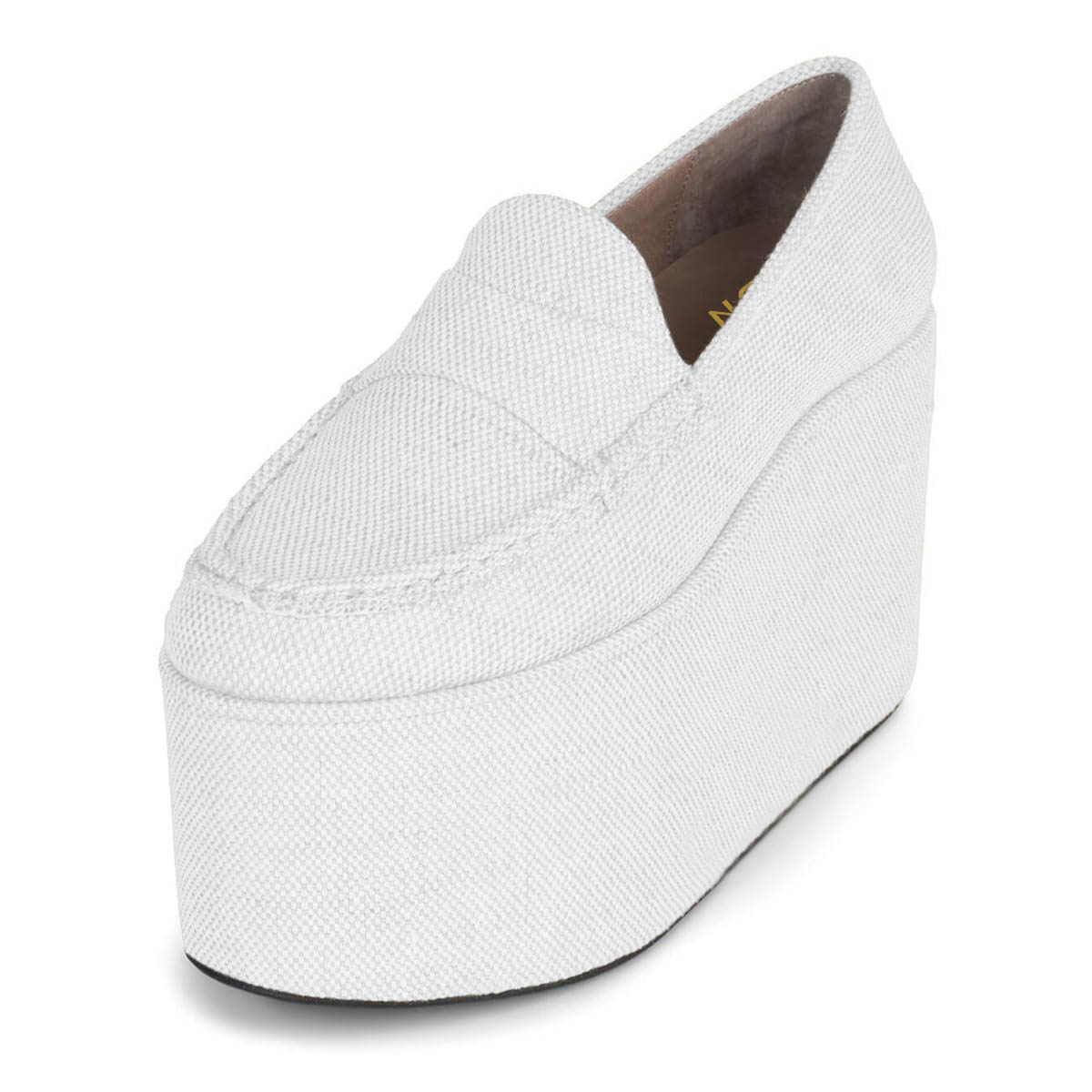 YDN White Round Toe Wedge Heel Simple Platform Loafers Women