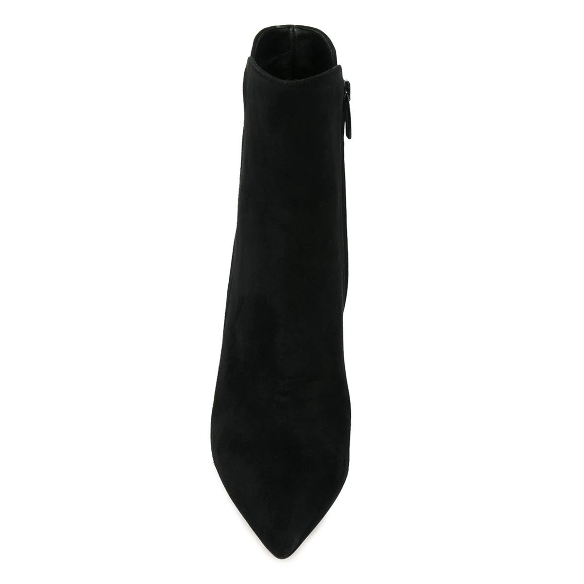 YDN Women's Vegan Suede Side Zipper Pointed Toe Black Heel Booties