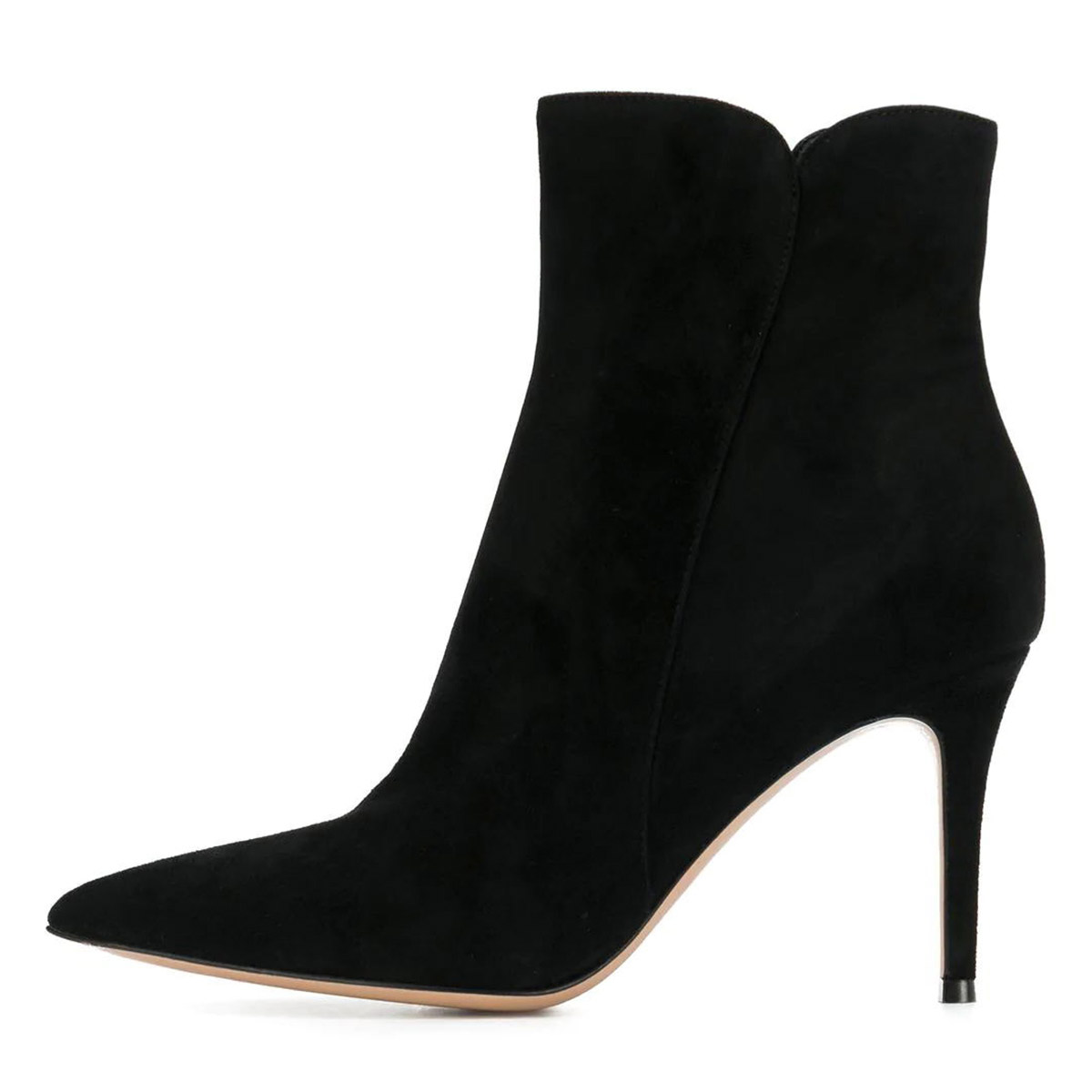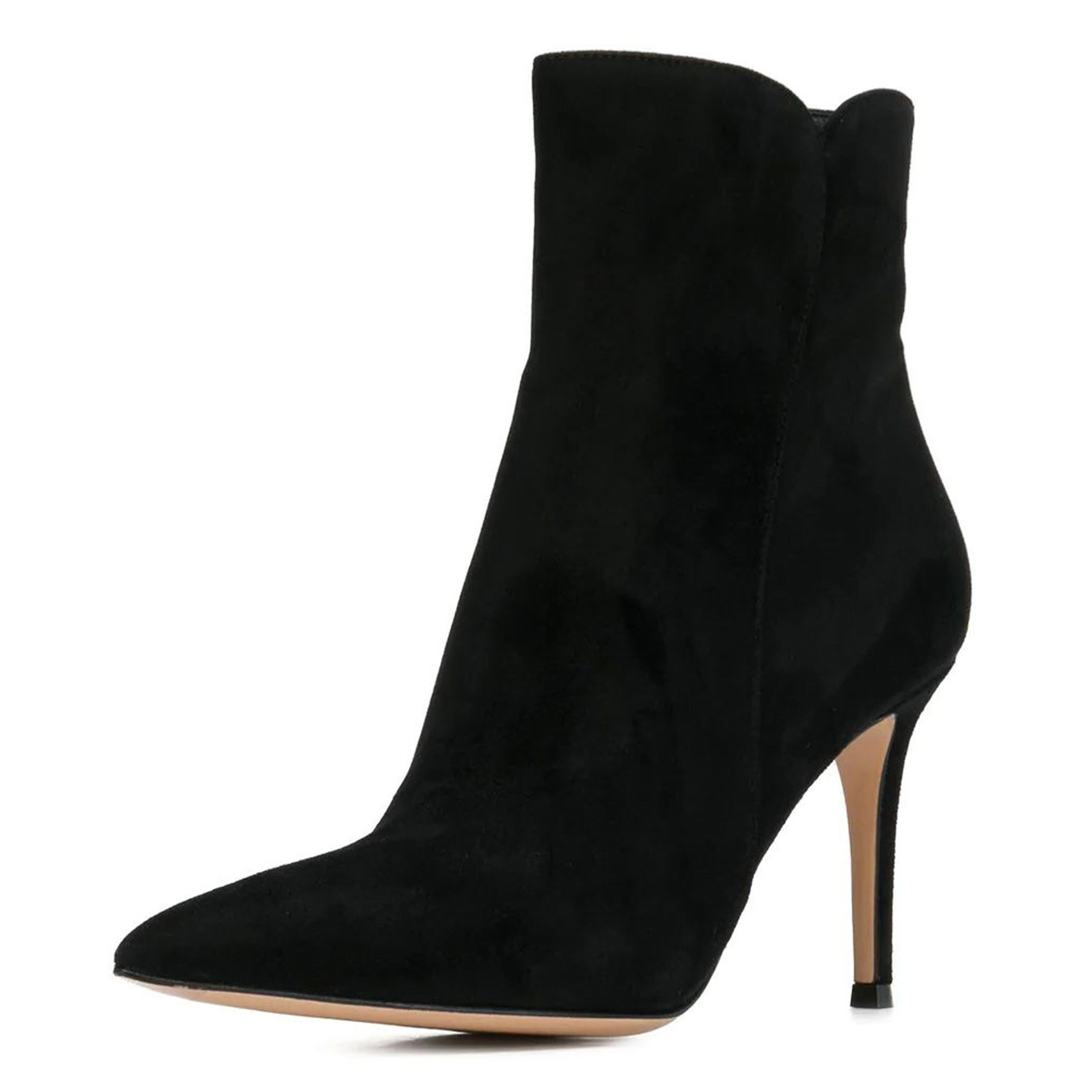 Special Designs: The pointed-toe black heel booties feature a side zipper for easy wearing.