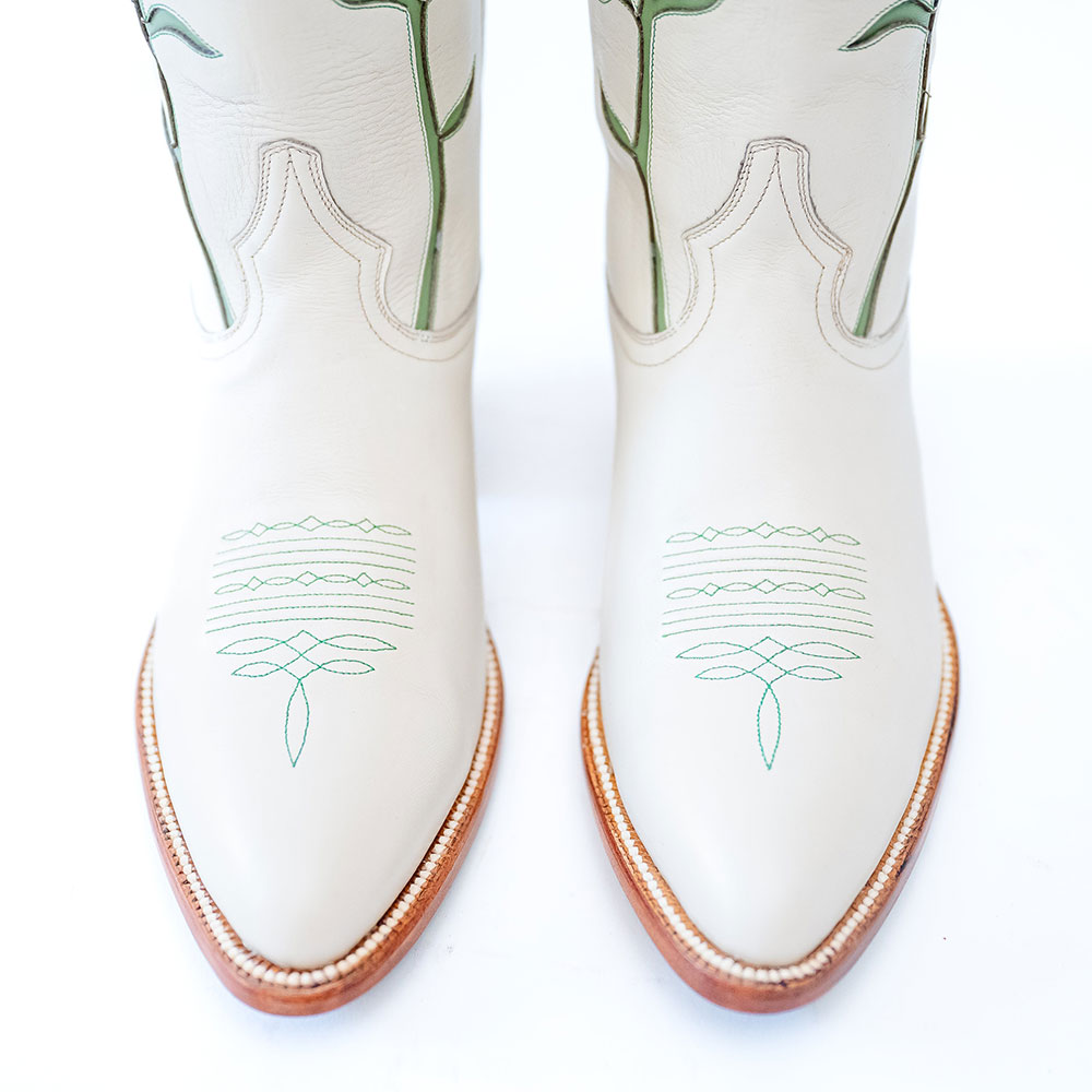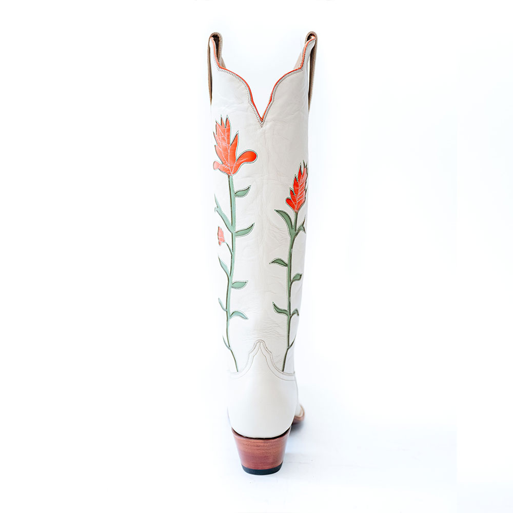 YDN Women's White Chunky Heel Knee High Flower Cowboy Boots