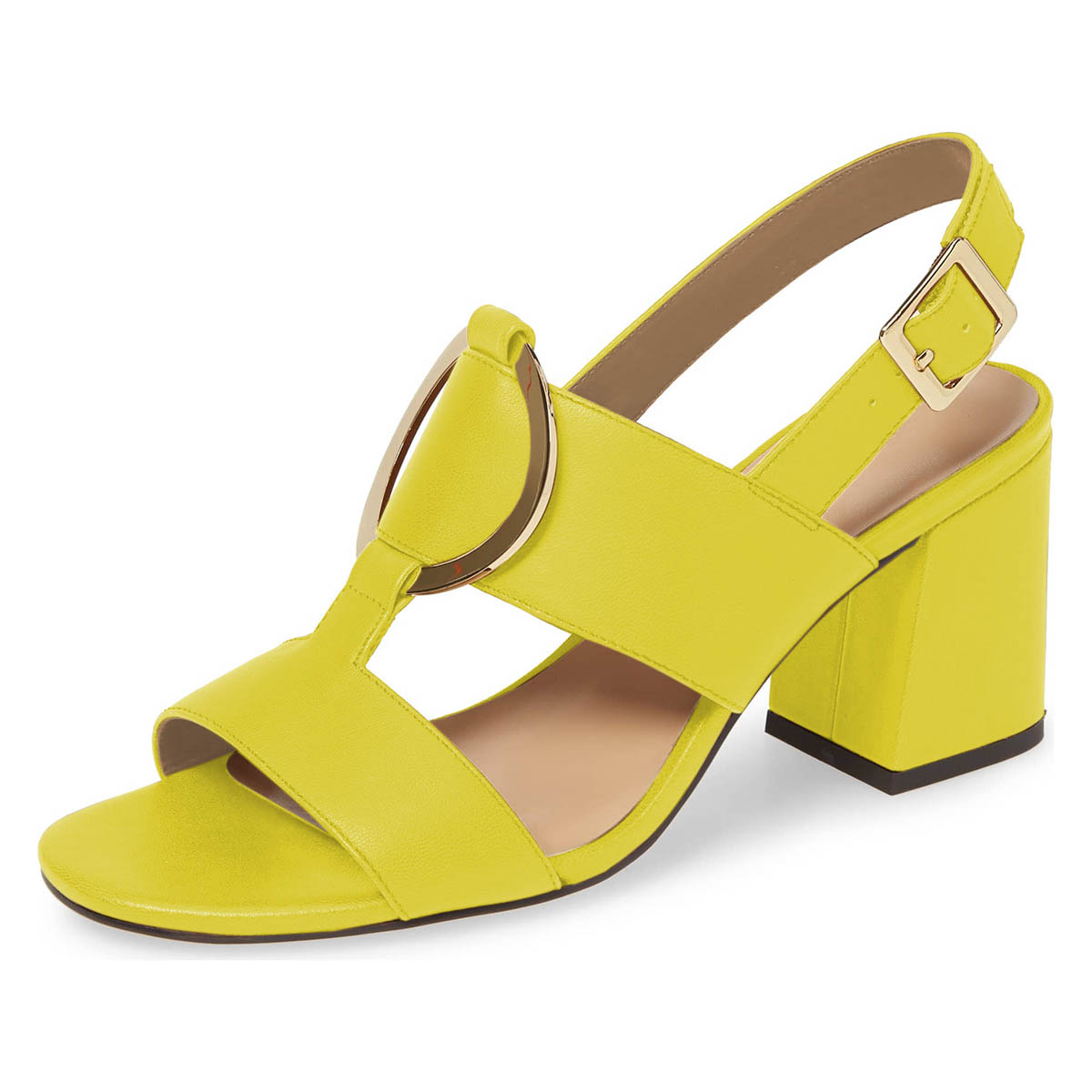 Yellow Vegan Leather Open Toe Hardware Summer Strap Heels Sandals